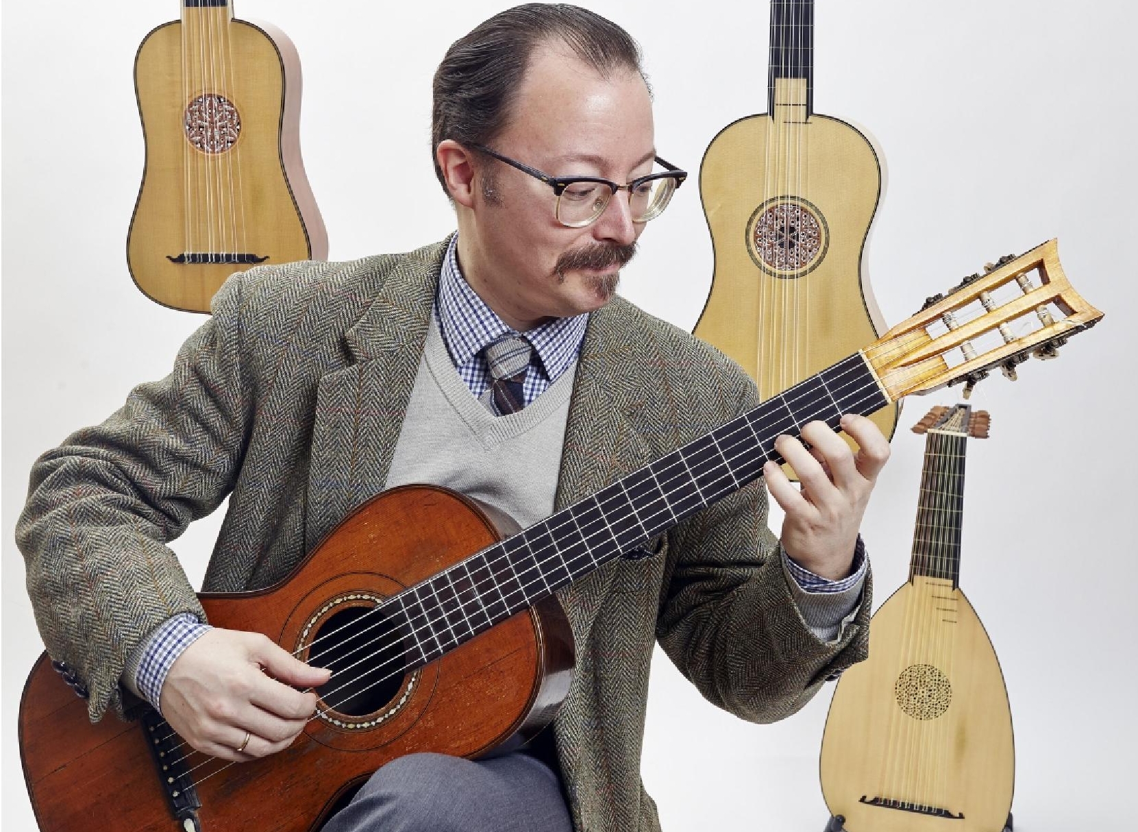 Han trakterar alltifrån luta, vihuela och barockgitarr till 1800-talsgitarr, rysk 8-strängad gitarr och modern gitarr. Under konserten presenteras musikhistorien kunnigt och med många roliga anekdoter, precis som han gjorde i sin populära radioserie ”Falks musikhistorier” i P2 under sommaren 2015.